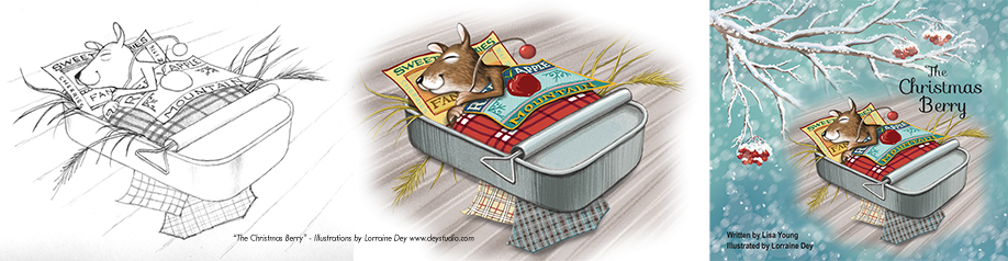 Here is an illustration from “The Christmas Berry” written by Canadian Author Lisa Young and illustrated by Lorraine Dey