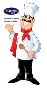I almost always create a pencil sketch first. Then I scan the sketch to a digital JPG file on the computer and use the sketch as a basis for painting in the color and details in layers over the sketch. Most of the work I create for istockphoto as royalty-free licensed art is done as a vector digital file. I create a large amount of work in vector style with Adobe Illustrator CS for freelance clients as well. Here is a vector chef that was commissioned by T.Marzetti Company for use on their website as well as large display signs. A vector file is scalable to any size without losing clarity therefore it was a perfect choice for this project. The style was requested by the client.